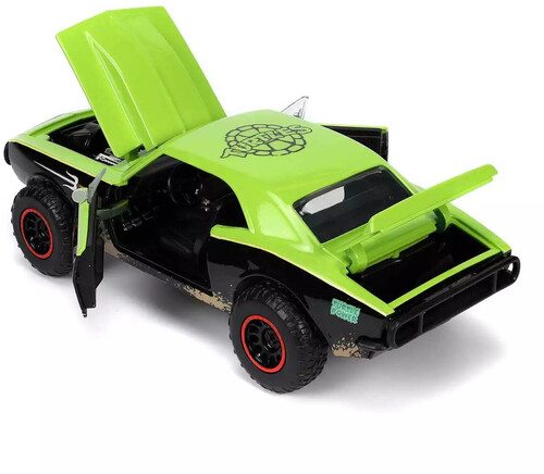 Cowabunga! Relive Turtle Time through this Hollywood Ride. Raphael has inspired this 1967 Chevy Camaro and you can add it to your collection. This die-cast ride was made for Raphael as it features iconic logos, decals, splash graphics, and Raphael's signature blade detail. Designed with precision, using quality heavy die-cast metal, the vehicle features working wheels, premium rubber tires, opening hood, doors, and trunk and a 100% 2.75" die-cast Raphael figure. Collect all TMNT Hollywood Rides.