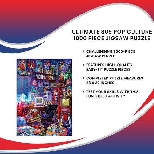Throwback! Enjoy a blast from the past with this nostalgic '80s Game Room 1000-Piece Jigsaw Puzzle.