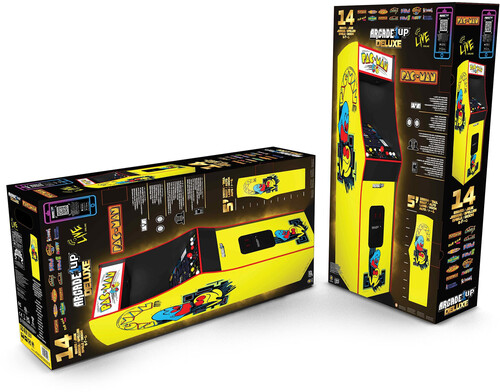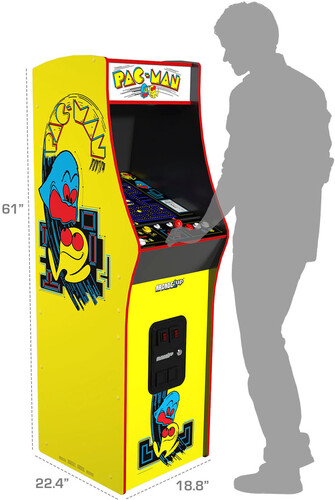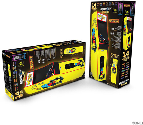 Created by Bandai Namco Entertainment Inc. (Previously NAMCO), this 1980 classic is the original PAC-MAN Arcade Game, containing 14 classic games. It comes with everything that made PAC-MAN such a groundbreaking experience--the glowing maze, PAC-DOTs, ghosts, and the yellow chomping hero---exactly how you remember it. A crisp 17" LCD brings all the classic visual details to life, and the integrated dual speakers produce the classic “waka, waka, waka” that has signaled “fun” for decades. The sleek, single look cabinet design, lit marquee and front faux coin door that are the signature tenets of our all-new Deluxe edition give it that authentic retro look that would add character and class to any room in the house. Real-feel joystick and buttons let you navigate the maze, gobble up POWER-PELLETs, and dodge BLINKY, PINKY, INKY, and CLYDE! And now with WIFI leaderboards, you can post your scores and compete with friends and gamers across the country.