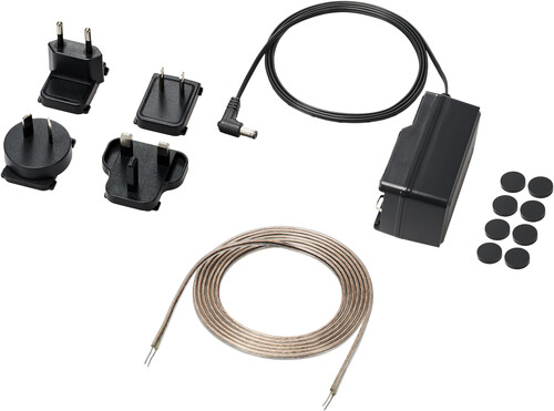 - Includes an AC adapter with three international plug adapters and a 6.6' (2.0 m) speaker cable