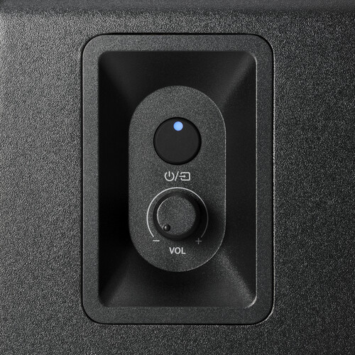 Powered by the included AC adapter (which comes with three adapters for international use) and joined by a long 6.6' (2.0 m) speaker cable, the speakers are easy to set and use in any space – requiring no external receiver or amplifier. Devices connect directly to the speakers’ dual RCA jacks or wirelessly via Bluetooth® technology. A power button with LED indicator and volume control dial keep operation simple.