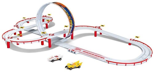 Kids and adults of all ages know the Speed Racer theme song—a timeless anthem that introduced motorsports to pre-teen generations. Now the cartoon we loved as youngsters comes alive in this Speed Racer Mach 5 Mania HO 1/64 scale electric slot car race set.