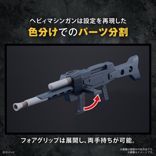 The turret lens can slide left and right, and rotate too; the movable head and lens are very expressive. A 3D metallic seal is included for the lens's color. The soles of the Scopedog's feet are highly detailed, and the Arm Punch can be reproduced using the extension gimmick inside the forearm. A heavy machine gun and various hand parts are included too.