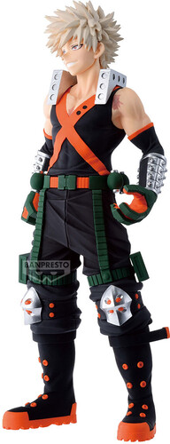 Crafted by Banpresto, this PVC collectible captures Bakugo in his iconic hero costume, radiating confidence and intensity. The sculpt highlights his signature black-and-orange outfit, spiky blond hair, and battle-ready stance.
