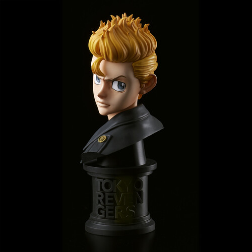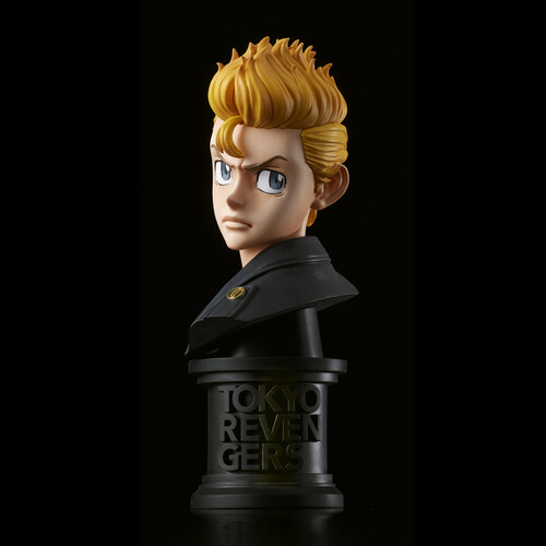 Available in color and in a black and white variant (sold separately) Takemichi wears a stern expression and measures 4 2/7" tall on a branded pedestal base.