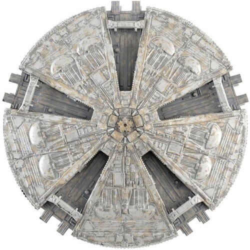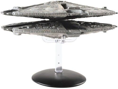 The original series Cylon Baseships consisted of twin discs built around a central column. They served as both heavily armed warships and carriers for the smaller Cylon Raiders. They were designed by legendary concept artist Ralph McQuarrie, who worked on Galactica after his concept work for Star Wars.
