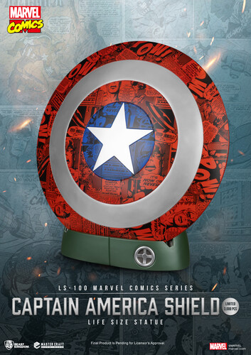 Beast Kingdom’s Master Craft series presents the LS-100 Marvel Comics Series Captain America Shield Life Size Statue, meticulously crafted with red, blue, and silver multi-layered paintwork for a refined metallic finish.
