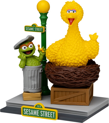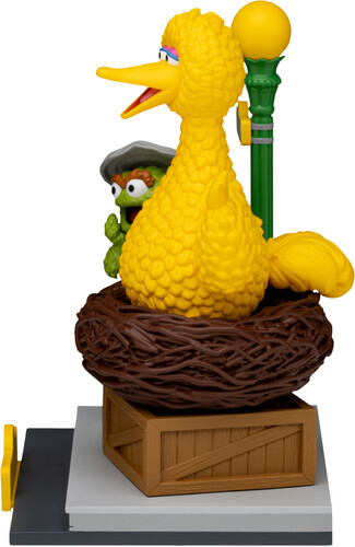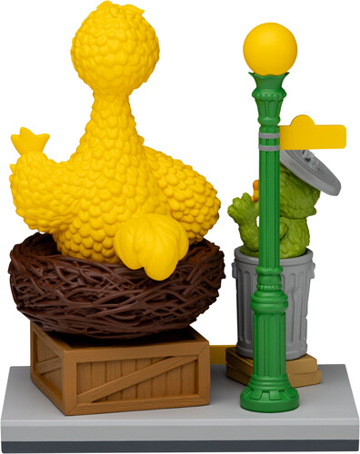 Big Bird spreads his wings from his nest, and Oscar pops out of his trash can with Slimey the worm in hand. Featuring vibrant paintwork and nostalgic street details, this diorama brings classic characters to life.