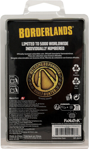 This limited edition Borderlands coin depicts Marcus to the front with the Vault inverted-V symbol to the reverse. Each one is individually numbered to the edge, and is limited to 5,000 worldwide.