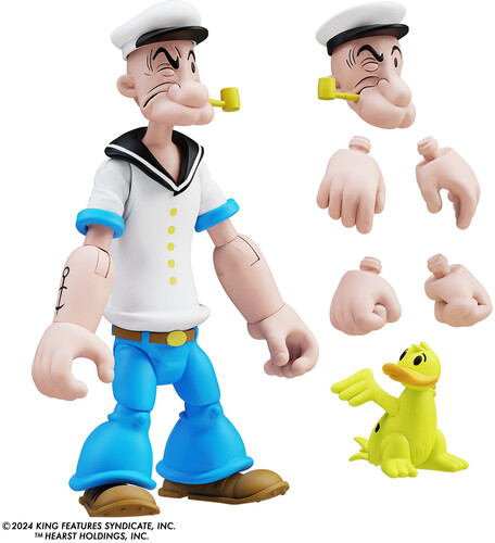This deco version features Popeye's original white shirt, has 20 points of articulation and includes alternate head, alternate hands and the Magical Whiffle Hen, Bernice!