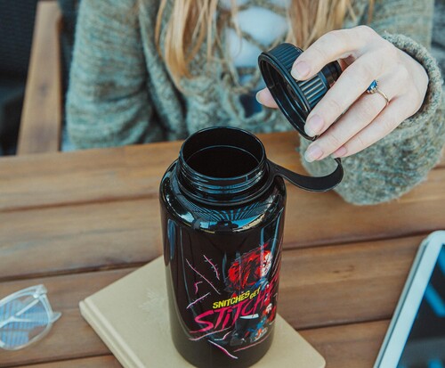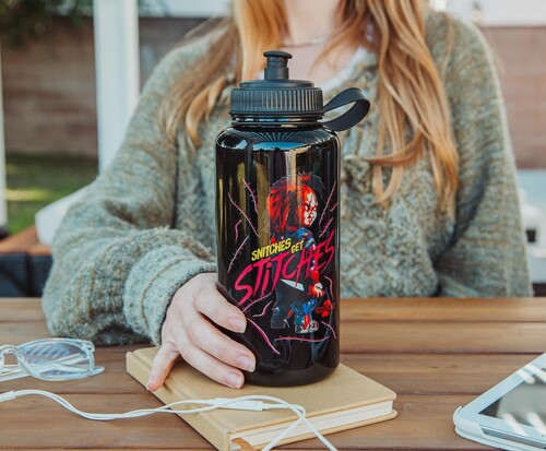 - QUALITY TO DIE FOR: Like Chucky's undying penchant for trouble, this BPA-free plastic water bottle topped with a sports cap is made for long-lasting use. For the best care, hand-wash only. Not safe for dishwasher or microwave.