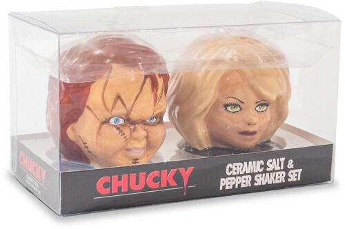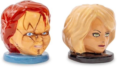 - QUALITY SO GOOD IT'S SCARY: These BPA-free ceramic spice dispensers darken any table setting with a double dose of fear. Chucky and Tiffany will never miss a chance to add sprinkling of terror to your kitchen or dining room table.