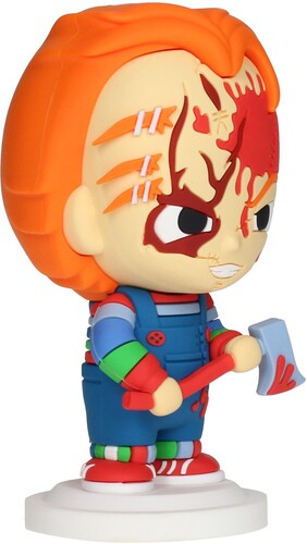 The most feared evil doll has arrived in a larger version! This Chucky figure, inspired by Seed of Chucky, perfectly captures every scar and his menacing expression. Dressed in his iconic colorful overalls and holding a knife, this piece is a detailed representation of the famous horror franchise. It's perfect for any fan who wants to feature Chucky as a standout in their collection. A must-have for horror collectors!