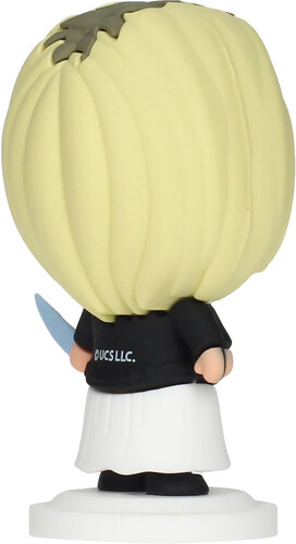 The bride of the infamous killer doll, Tiffany, comes in a 3 in. rubber figure, dressed in her iconic black wedding attire. This figure captures Tiffany’s essence as Chucky’s perfect counterpart, referencing their peculiar and terrifying love story since Bride of Chucky.