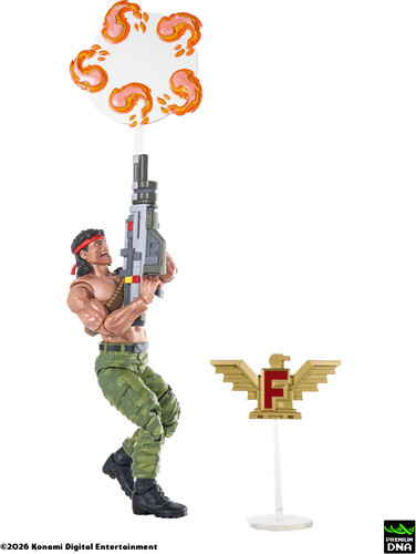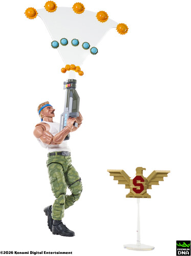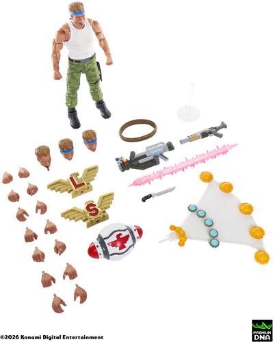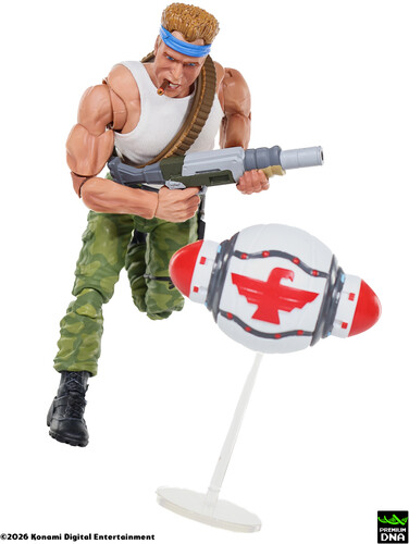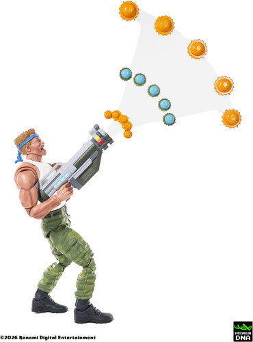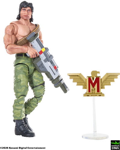 Bill Rizer features hyper articulation for recreating all of his iconic in-game poses and signature attacks. Maximum Payload set includes: Spread Gun with spread blast effect, Machine Gun with laser effect, 4 swappable heads, soft goods shirt bandolier, knife, S Icon Falcon Badge, L Icon Falcon Badge, badge stand, power up cannister, 4 sets of horizontal hinge hands, and 4 sets of vertical hinge hands.