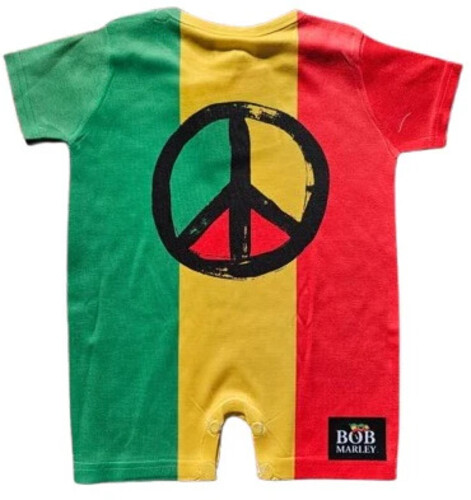 Celebrate the legendary band with this romper featuring a Bob Marley One Love message and Jamaican Flag colors.