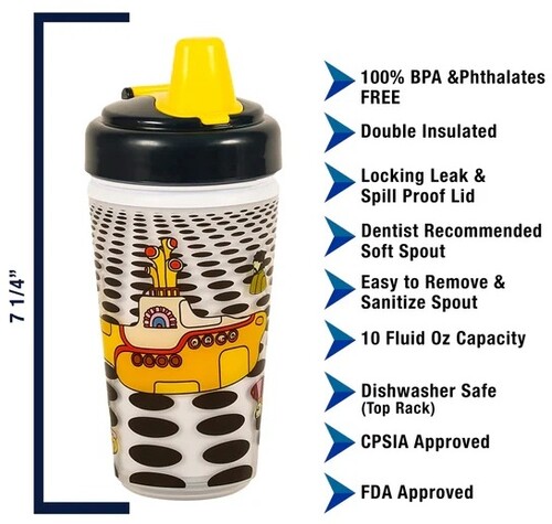 This rockin' sippy cup is perfect for your rockin' baby. Celebrate the album and film with an insulated "Yellow Submarine" Sea of Holes Sippy Cup by The Beatles.