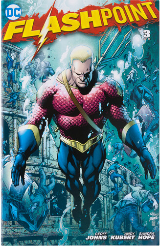 In the Flashpoint Timeline, the history of the DC Universe was rewritten. Unlike the heroic Aquaman we know, Arthur Curry returned to Atlantis at a younger age, never developing a sense of compassion and kindness. He instead became a ruthless Emperor, raging war on the Amazons of Themyscira.