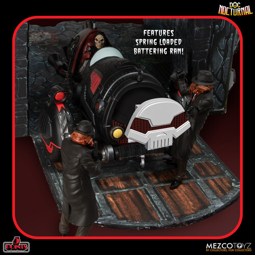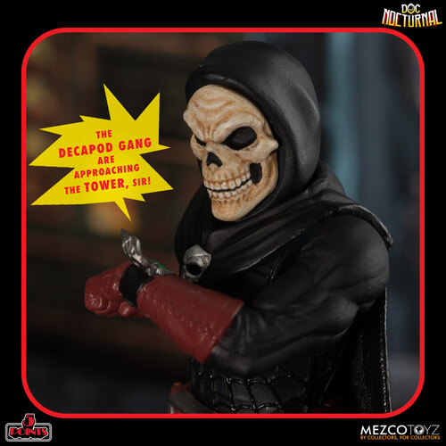 The Nocturnal Tower Playset is a call-back to a time when 5 point articulated figures, vehicles, and large play sets ruled the toy aisles! It contains our heroes, Doc Nocturnal and Woodford, two of the villainous Decapod Gang, and the Land Reaper – Doc’s trustly vehicle!