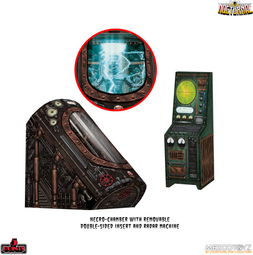 Nocturnal Tower – the fortress and domicile of Doc Nocturnal. This two-story playset features a laboratory with Doc’s Necro-Chamber and various machinery at the top, and a garage with opening tower gate for the Land Reaper to pass through at the bottom.