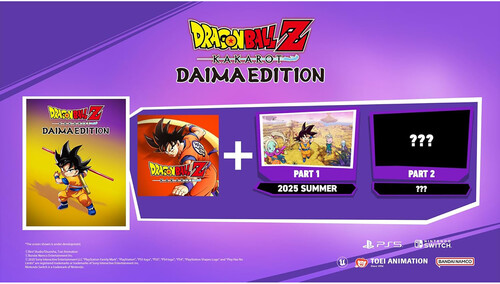 The DAIMA EDITION includes the original DRAGON BALL Z: KAKAROT game and a download voucher for the DAIMA: Adventure Through The Demon Realm Pack.