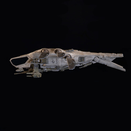 Shown in flight mode, with the landing gear up and the weapons deployed, the model boasts an impressive wingspan of just under two feet and measures 10.5 inches from nose to stern. It ships fully-assembled and painted, making for an exceptional display piece.