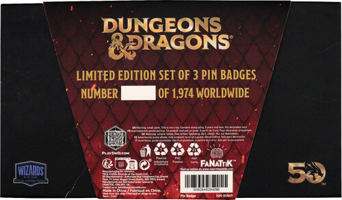 Dungeons & Dragons: 50th Anniversary - Limited Edition Pin Badge - Set of 3