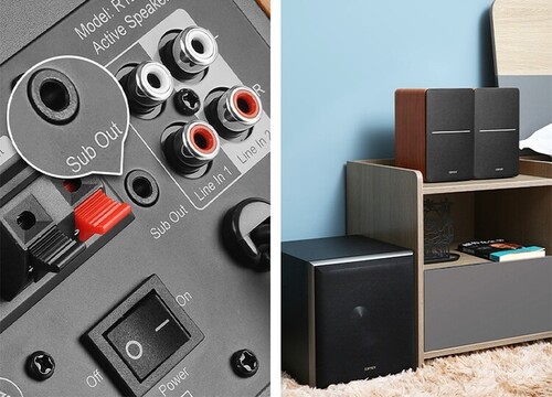 Sub-out Interface and more - When connected the sub-out automatically detects the subwoofer and activates the digital crossover. Dual RCA inputs allow you to connect to two devices at a time. Connect to your devices such as phone, PC, laptop, tablet, or gaming console with RCA to RCA audio cable, and 3.5 mm-RCA audio cable, eliminates the need to switch cables.