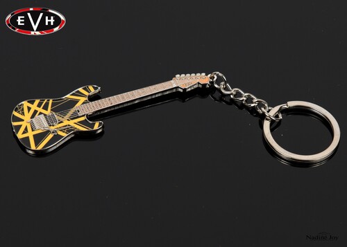 The EVH Black and Yellow "Bumblebee" guitar keychain can be used for more than just keys. Use it as a zipper pull, an embellishment on a backpack zipper, gig bag, and much more. EVH Guitar Keychains are the perfect gift for EVH fans, guitar players, or any rock-n-roll enthusiast.