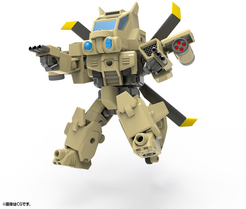 A new series of plastic model kits featuring cool and cute chibi robots by mechanical designer Kunio Okawara has arrived! The instructions for this series include a comic drawn by Kōichi Tokita. Always calm and composed, JYRO-N is a tactical support Evoroid that can transform from a chibi robot to a combat helicopter with no interchangeable parts required!