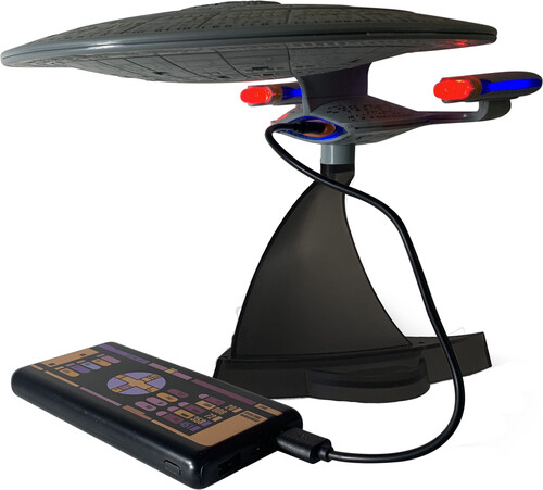 - Includes Enterprise 1701-D, two-piece snap-together stand, and micro-USB to USB charging cable