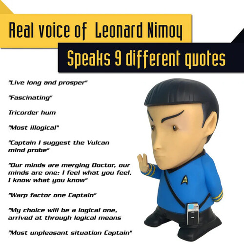 Celebrate the groundbreaking show Star Trek with your very own 6 Inch Mr. Spock Bluetooth® Speaker with sound effects.