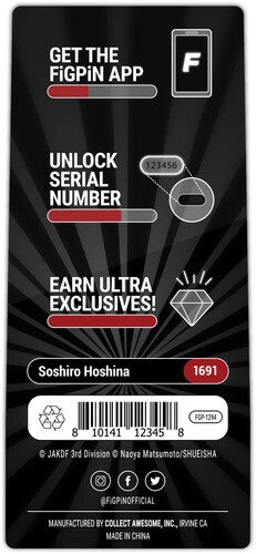 This Soshiro Hoshina FiGPiN is a common release with a drop date of October 19, 2024. This enamel pin has a limited release of only 500 pieces made.