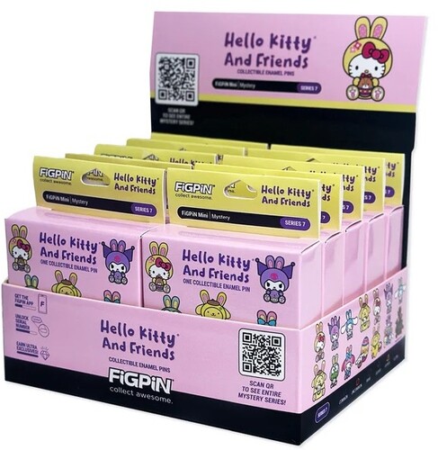 FiGPiN's Hello Kitty® Mystery Mini Series 7 features Easter themed designs of Hello Kitty and Friends. Discover a spring-filled collection of enamel pins with characters like Hello Kitty, Cinnamoroll, Pompompurin and more! Each Mystery Mini is enclosed in a blind box and you can find a randomized character inside. Complete your collection and download the FiGPiN APP to redeem the ultra rare Easter Egg, a black and gold-plated enamel pin with only 100 made!