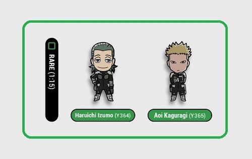 - Rare (15%): Haruichi Izumo (Y364), Aoi Kaguragi (Y365)