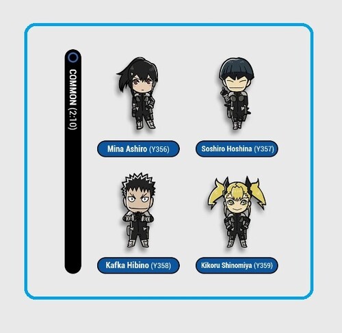 - Uncommon (30%): Mina Ashiro (Y360), Soshiro Hoshina (Y361), Kafka Hibino (Y362), Kikoru Shinomiya (Y363)