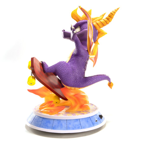 The statue is inspired by the cover art of the PAL version of Spyro™: Year of the Dragon. It showcases Spyro™ stylishly riding a skateboard, with a flame accentuating the scene. The base draws inspiration from a slope found within the skatepark area of the Enchanted Towers realm.