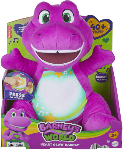Your child’s hug brings their favorite purple dinosaur to life with fun music and lights with the Heart Glow Barney plush toy from Fisher-Price!