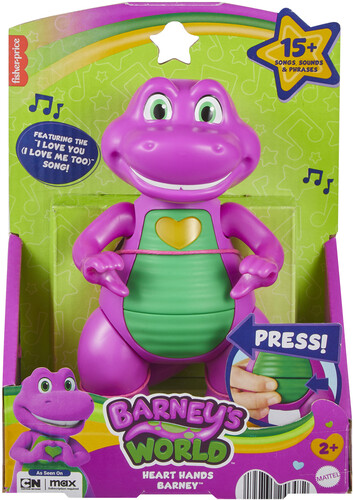- This musical toy Barney figure recreates the character’s signature “heart hands” pose from the Barney’s World series