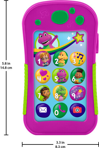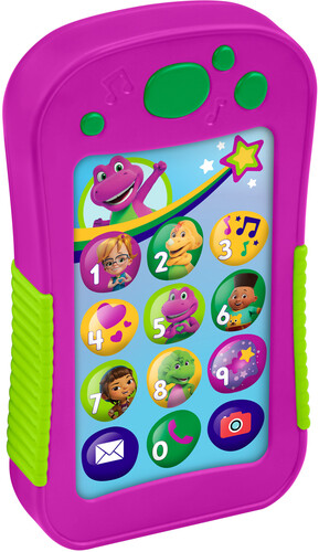 - Musical toy phone for kids featuring characters, songs and phrases from the Barney’s World series