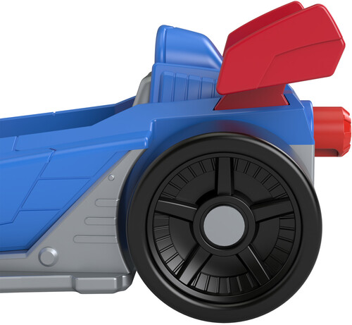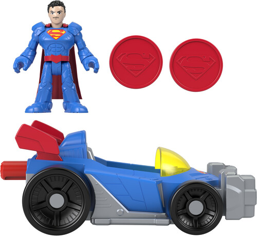 Preschoolers can join the battle between good and evil with a 3-inch character figure, toy car with launcher and two discs. Kids simply press the Imaginext button to activate the projectiles and battling action!