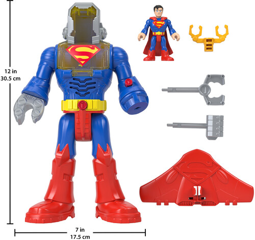 - Playset includes Exo Suit robot, 3-inch-tall Superman poseable figure, plus 4 play accessories compatible with both the robot and the figure