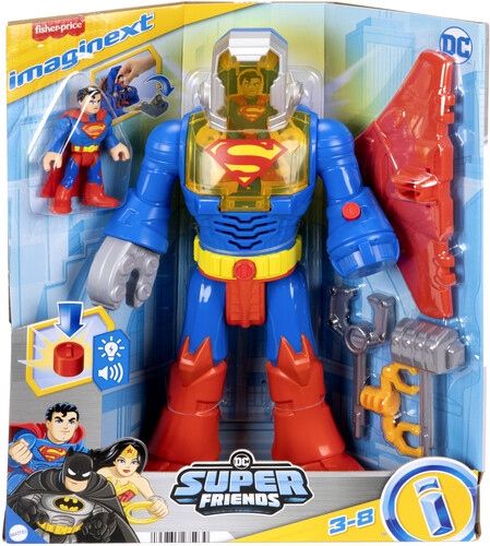 Preschool kids can act out epic DC Super Hero™ adventures with this Imaginext DC Super Friends™ Superman™ Insider & Exo Suit robot playset from Fisher-Price.