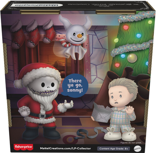 Four residents of Halloween Town are brought down to Little People® figurine size, including the Pumpkin King Jack Skellington, his ghostly dog Zero, lovable rag doll Sally, and the big bad Oogie Boogie with his creepy-crawly bugs.