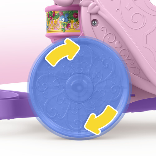 - Roll the carriage along or spin the dance floor to hear Disney Princess-inspired music and enchanting sound effects
