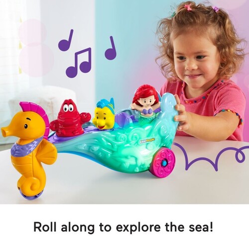 - Roll-along musical toy featuring Ariel, Flounder and Sebastian, plus the memorable tune, “Under the Sea”
