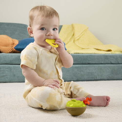 Styled just like everyone’s favorite appetizer, this pretend food toy features a wobbly rattle bowl of "guacamole" and a removable BPA-free teether chip. Featuring a variety of sounds and textures for little ones to explore, this sensational snack helps foster fine motor skills and introduce cause & effect while engaging your baby’s developing sensory skills.