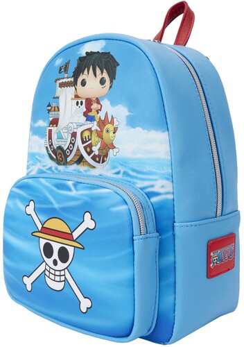 Set a course for adventure with the One Piece Luffy Funko Mini Backpack! This swashbuckling accessory has plenty of room for holding all of your pirate treasure as you sail the high seas! This mini backpack features Pop! Luffy aboard the Thousand Sunny, as well as the emblem of the Straw Hat Pirates on the front pocket. Backpack is made of vegan leather (polyurethane) and has adjustable shoulder straps. Additional features include sturdy metal hardware and printed details. This backpack is an officially licensed One Piece product. Approximate dimensions: 9” W x 10.5” H x 4.5” D. (Please note: width is measured across the bottom of the bag.)