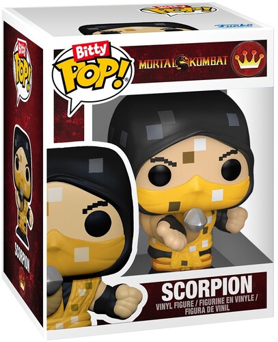 The world of POP! is getting bigger—and smaller—with Bitty POP! collectibles! Expand your Mortal Kombat™ collection with Bitty POP! Arcade Scorpion™! Bitty POP! figure is packaged in a hard acrylic display case with a detachable bottom lid. The detachable bottom lid doubles as an acrylic base, to which the Bitty POP! figure is adhered. Remove Bitty POP! Scorpion™ from his case so he can take his place in the Bitty POP! Arcade Display! The Bitty POP! case can be stored inside the Bitty POP! Arcade Display, directly below POP! Scorpion™. Vinyl figures are approximately 0.9 and 3.5 in (2.3 and 8.9 cm) tall.
