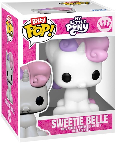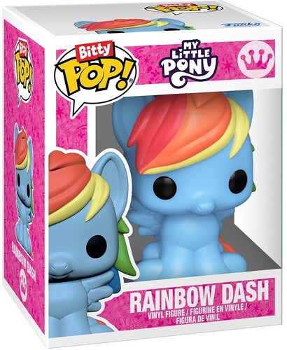 The world of POP! is getting bigger—and smaller—with Bitty POP! collectibles! Expand your My Little Pony collection with this 4-pack featuring Bitty POP! Rainbow Dash, Bitty POP! Sweetie Belle, Bitty POP! Applejack, and Bitty POP! Spike. There’s a 1 in 6 chance you may find the chase of Bitty POP! Scootaloo. Bitty POP! collectibles are packaged in hard acrylic cases with detachable bottom lids. The detachable bottom lids double as acrylic bases, to which the Bitty POP! figures are adhered. Sort and arrange your Bitty POP! collectibles with the included display case! Acrylic display cases are stackable and hold four Bitty POP! figures each. Vinyl figures are approximately 0.9 in (2.3 cm) tall. Four figures per single package purchase.